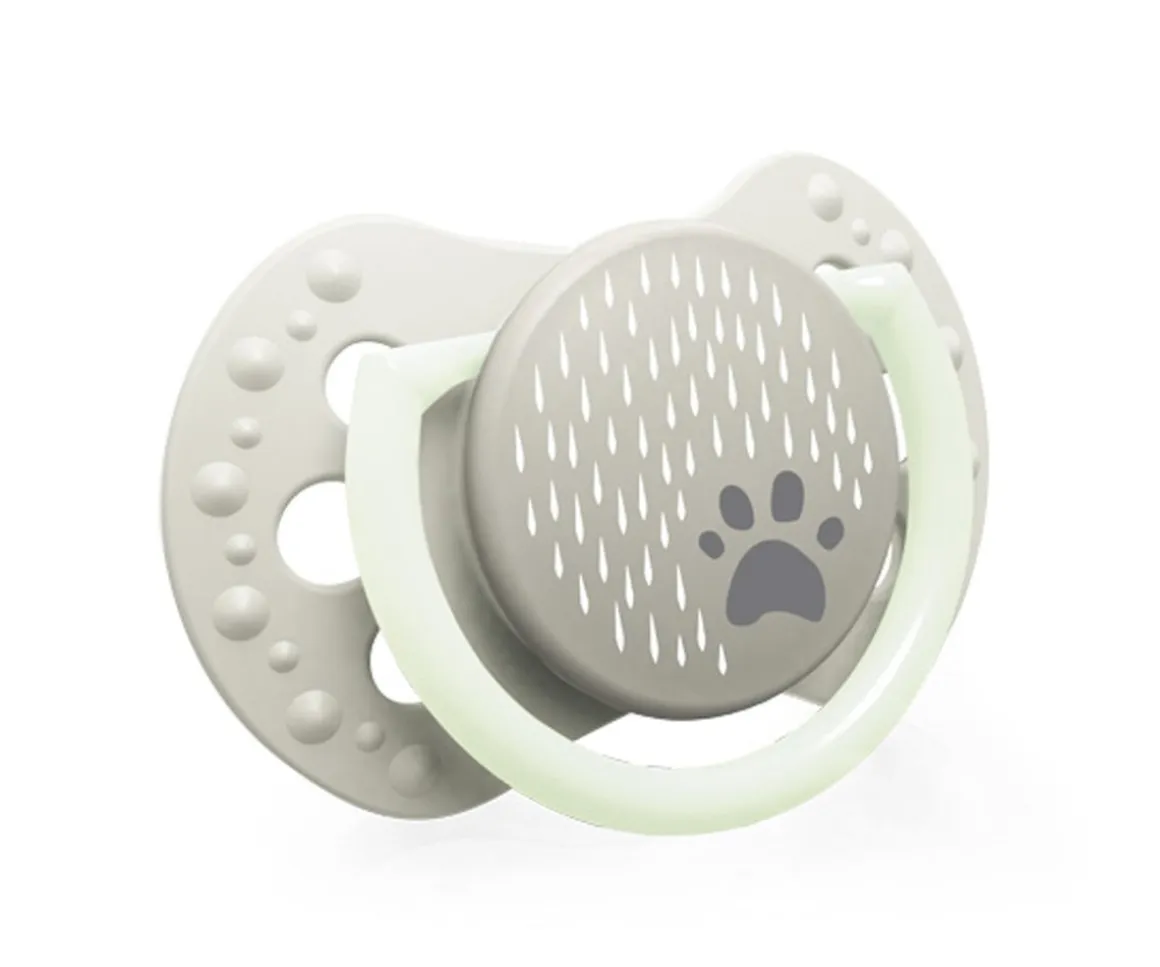 - La anilla del chupete con huella brilla en la oscuridad