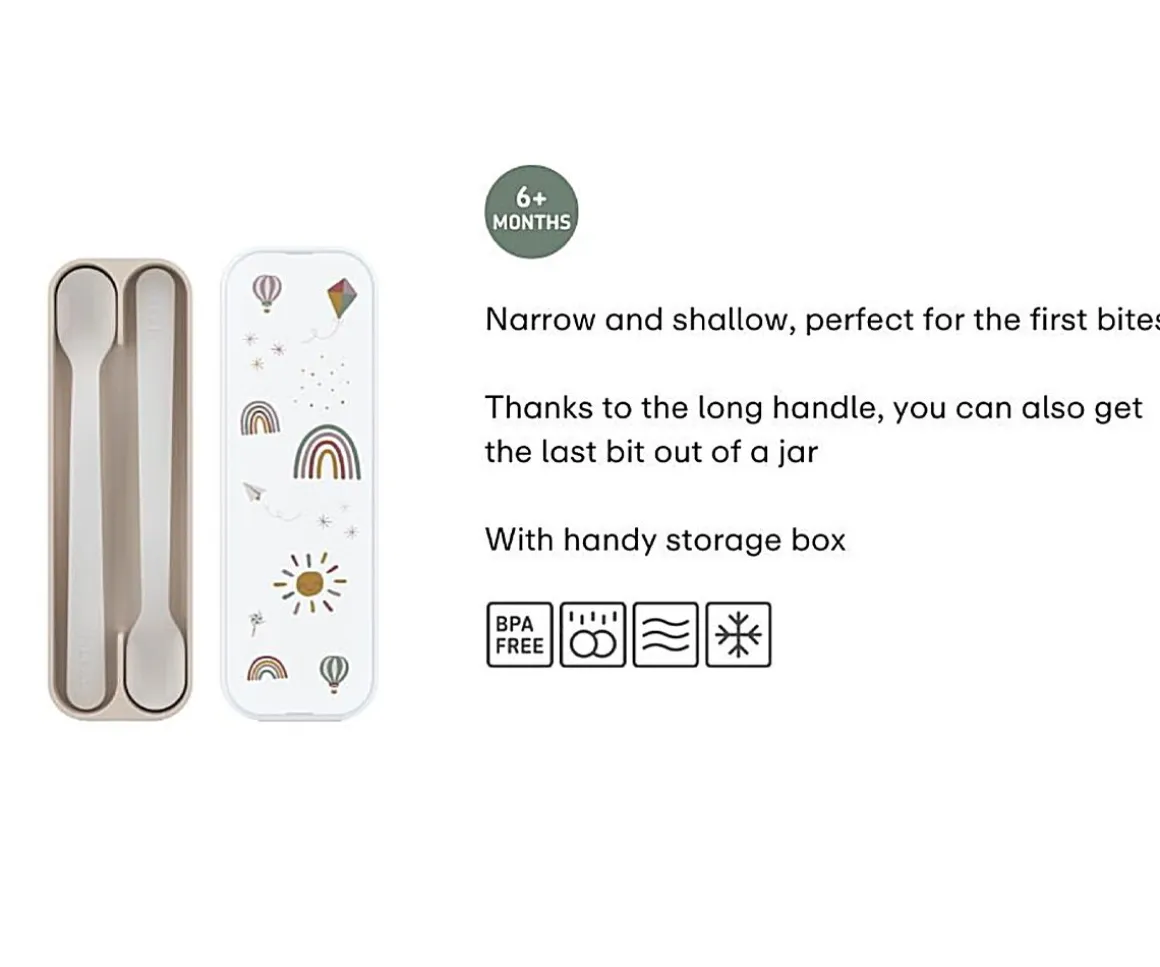 - Incluye 2 cucharas estrechas y planas