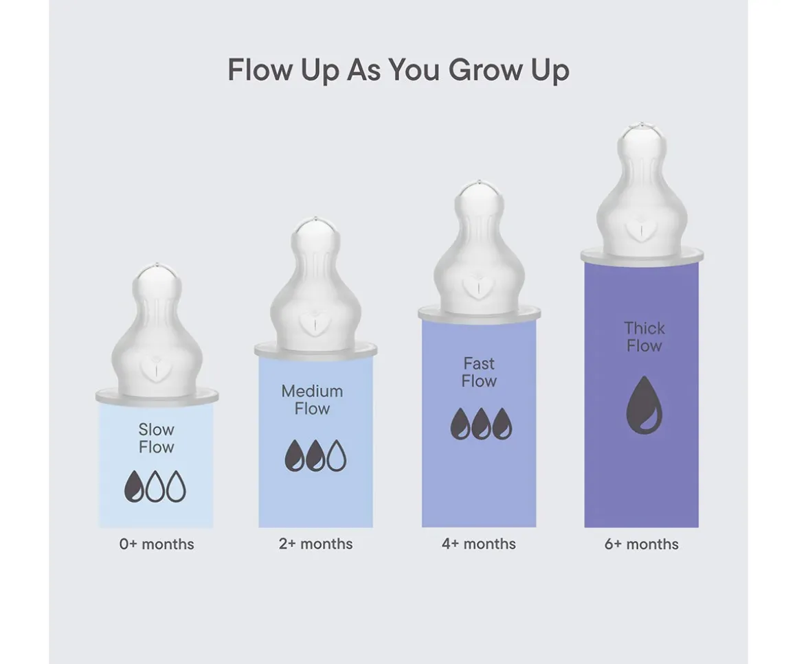 La tetina imita la forma natural de un pezón durante la lactancia facilitando la transición al biberón. Cuenta con diseño anti-cólico para ayudar a reducir los gases, una superficie texturizada para evitar que el bebé suelte el pezón y una construcción duradera, hipoalergénica y libre de BPA.