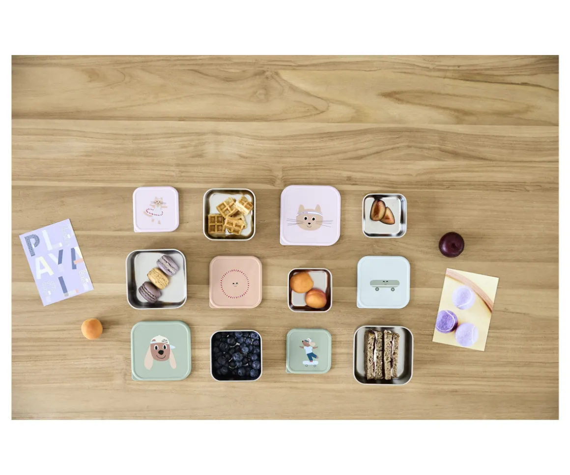 El set de 3 cajas con base de acero inoxidable de LÄSSIG para llevar fruta, verdura y pequeños snacks son ideales para llevar contigo al cole, de excursión o al parque.