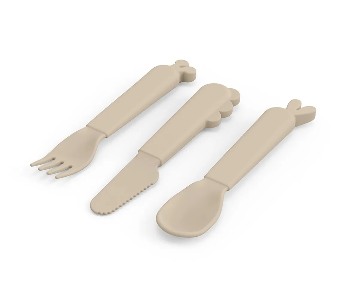 El cuchillo mostaza Ozzo, el tenedor Nozo y la cuchara Elphee harán que aprender a comer solo sea fácil y divertido.