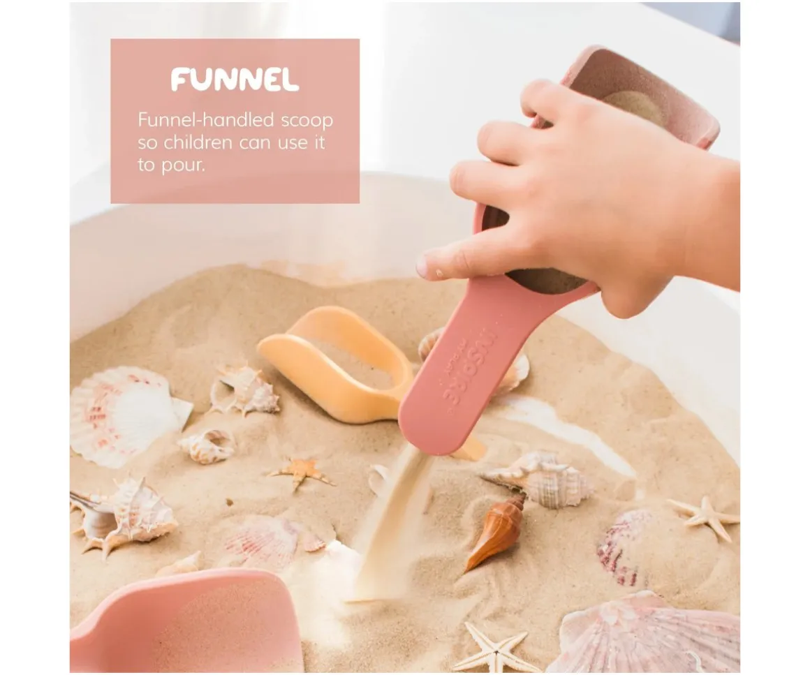 Inspire My Play trae este set de 3 palas de silicona de diferentes tamaño que encajan entre sí y son ideales para jugar en la arena, durante el baño o en tu mesa sensorial.