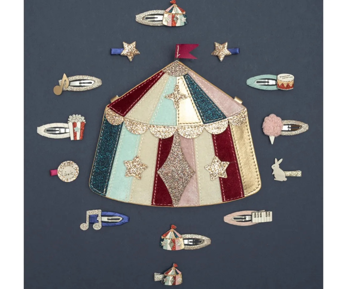 4 clips adornados brillantes leones de circo que quedarán genial adornando el pelo de tu peque.
