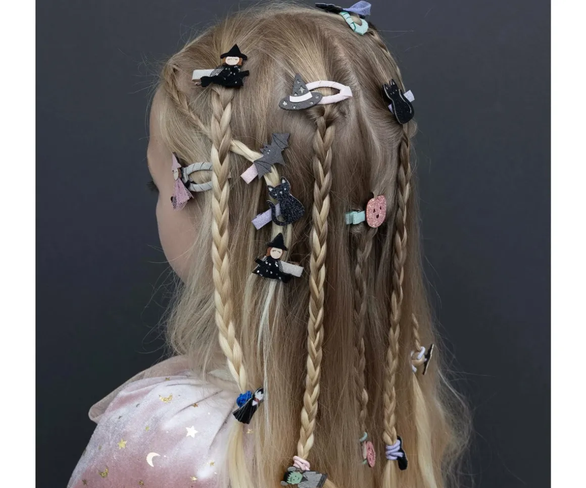 ¡Bonitos clips decorados con pequeñas brujitas perfectas para darle un toque más original a tu disfraz!