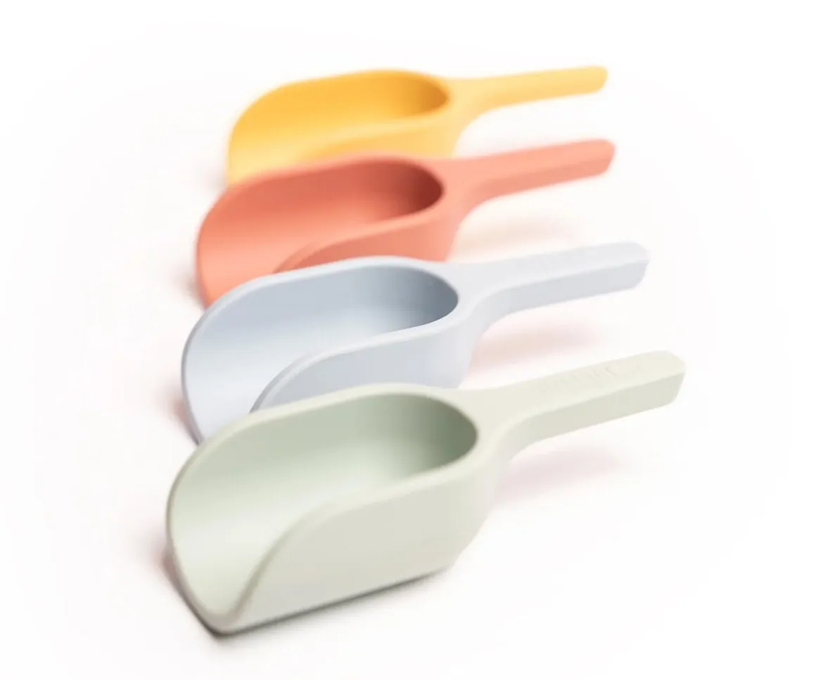 Diseñadas para que las manos de los peques las manipulen fácil y cómodamente, Inspire My Play presenta este set de 4 mini palas de silicona perfectas para el juego en arena, agua o para recoger y soltar materiales.