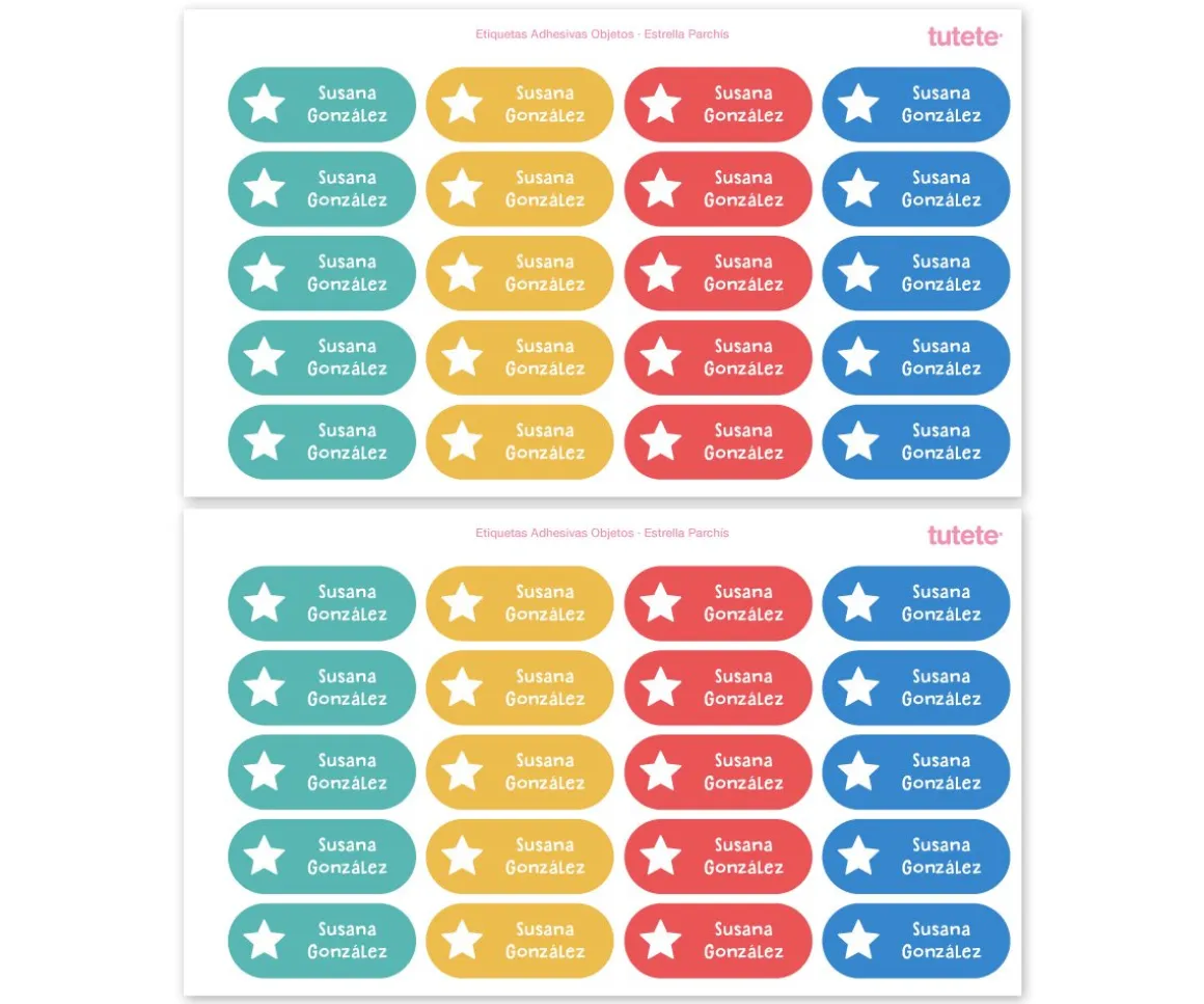 Práctico pack de 40 etiquetas adhesivas personalizadas con el que podrás etiquetar libros, fiambreras, juguetes, botellas… ¡Márcalo todo para no perder nada!