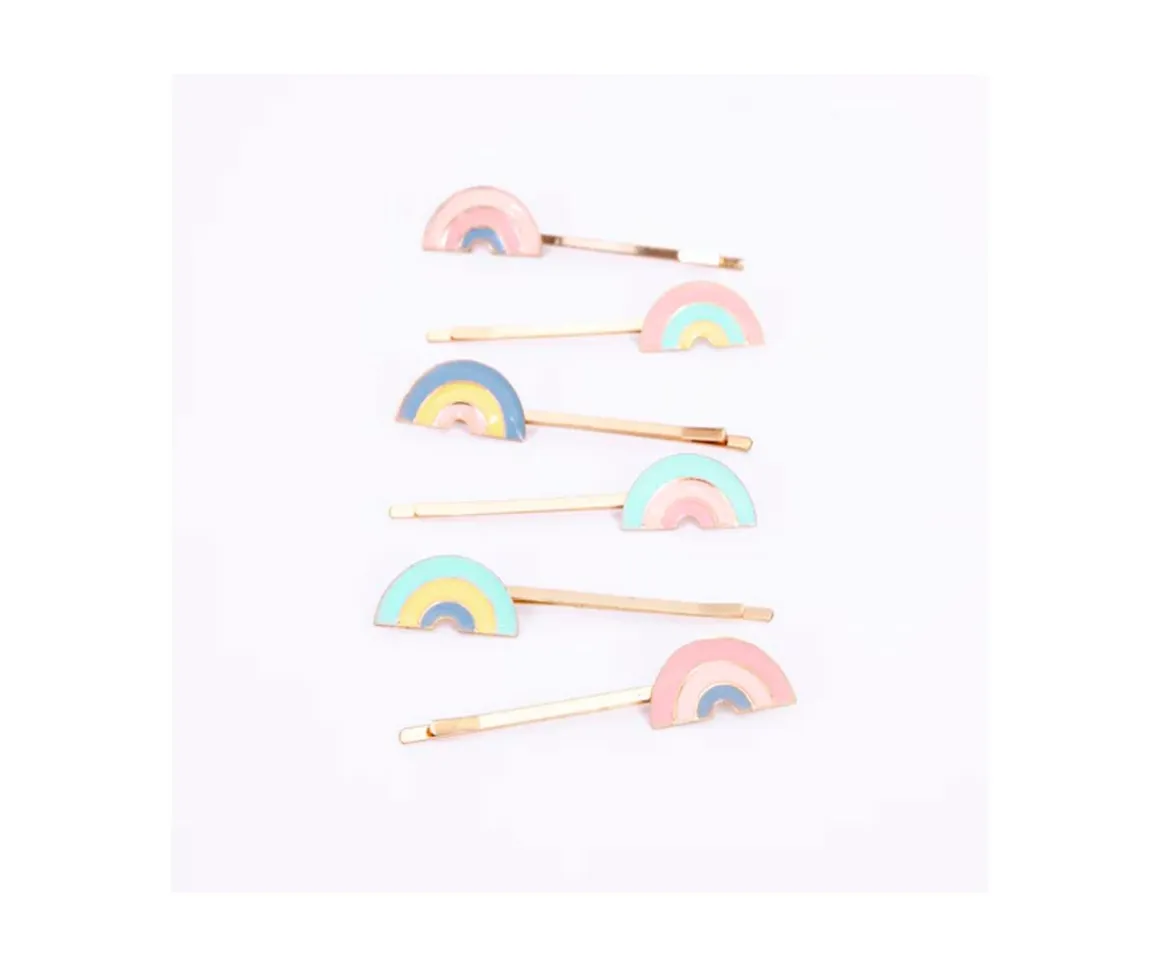 Este conjunto de horquillas con forma de arco iris de diferentes colores será el complemento ideal para el pelo de los peques.