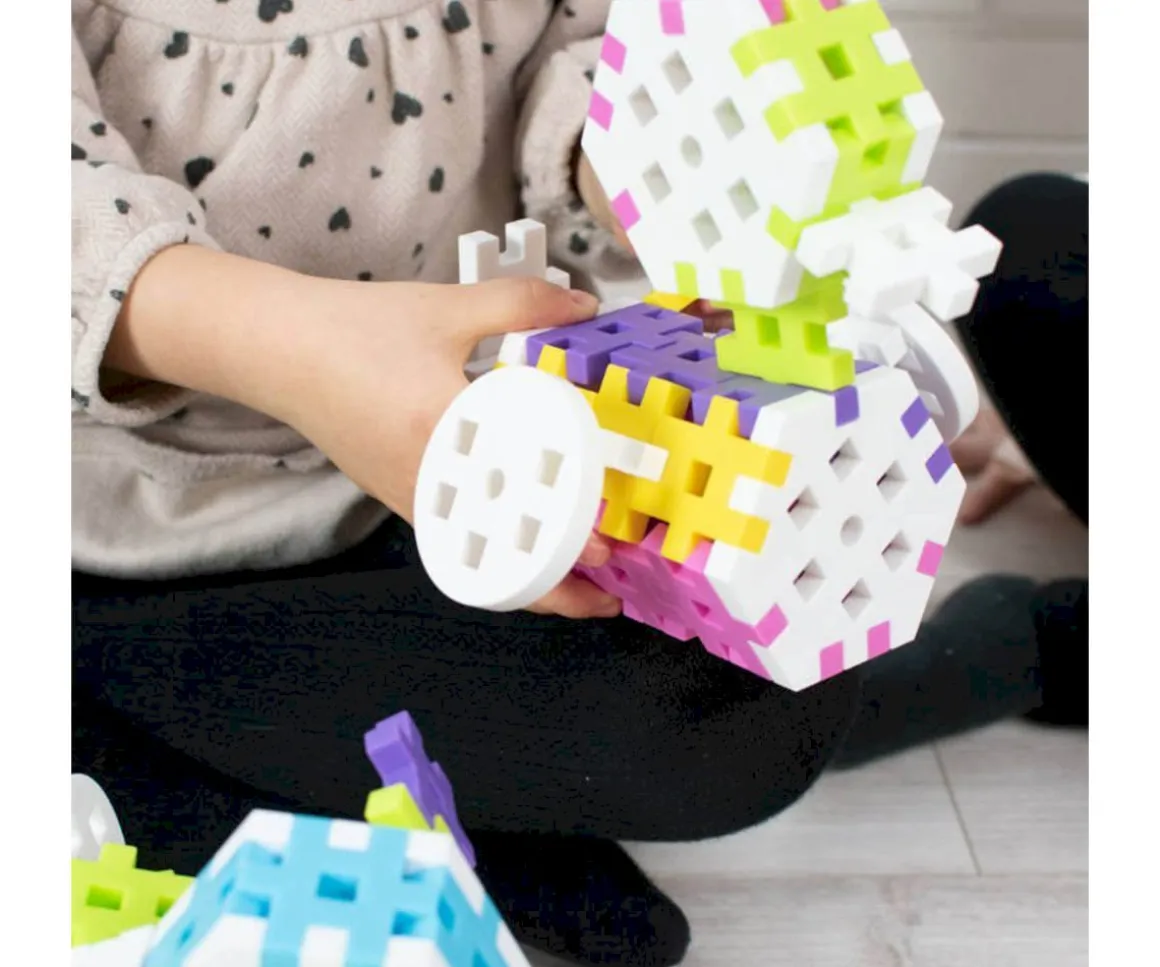 Maxi Constructor se trata de set de colores vivos o pastel que combinan la pieza Maxi de 4.2 cm con piezas redondas, hexagonales y varillas.