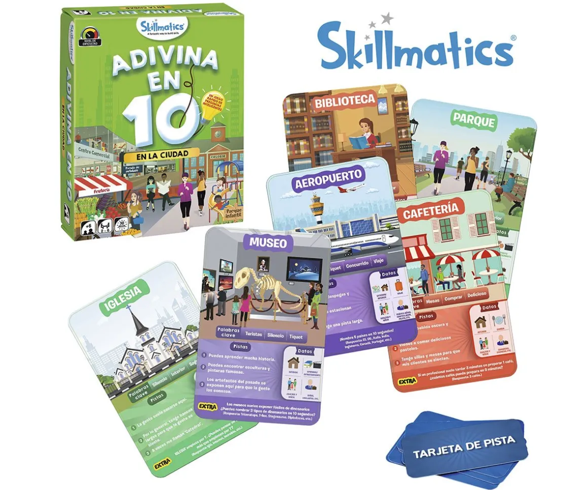 ¿Es un lugar al aire libre?, ¿La gente va allí a comprar? ¡Piensa bien, haz preguntas inteligentes, utiliza tus Tarjetas de Pistas y sé el primer jugador en ganar 7 tarjetas!