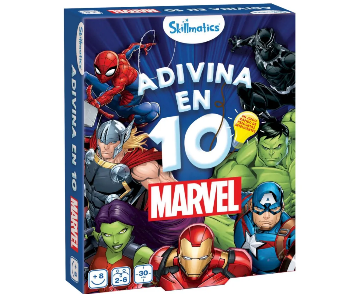 Haz hasta 10 preguntas para adivinar el personaje de Marvel de la tarjeta de juego. ¿Puede bolar? ¿Es parte de los Vengadores? ¿Es de Wakanda? Piensa bien, haz preguntas inteligentes, utiliza las tarjetas de pista adecuadamente y sé el primer jugador en conseguir 7 tarjetas de juego.