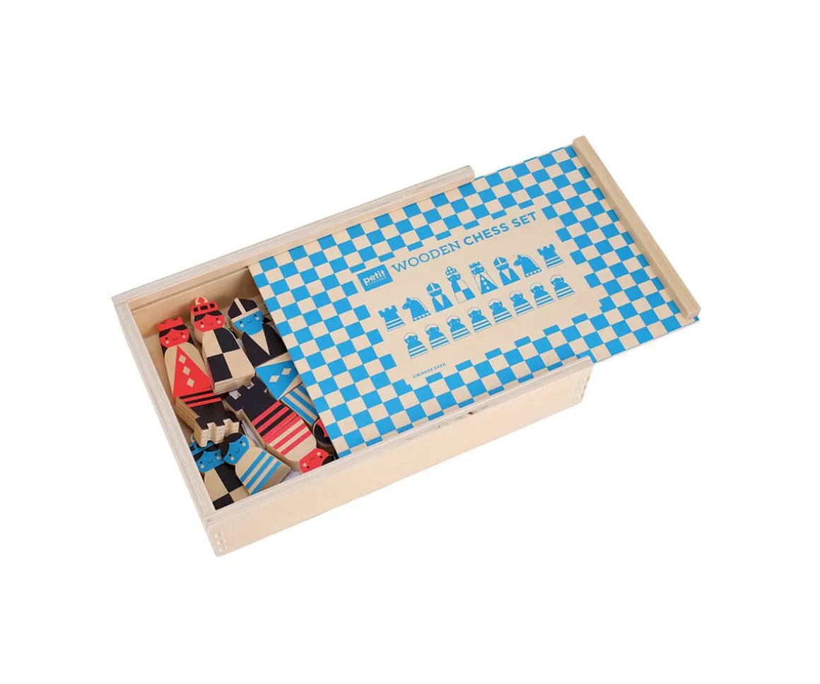 Mantén la cabeza fría con este divertido juego de ajedrez de madera de Petit Collage. Perfecto para niños y principiantes, incluye 32 piezas, un tablero y sencillas instrucciones en seis idiomas. Viene en una caja de madera portátil para jugar y aprender en cualquier lugar.