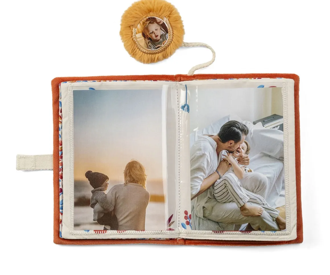 Álbum de fotos suave con la imagen de Jack el león de Lilliputiens, perfecto para que los peques guarden sus recuerdos. Incluye 10 bolsillos para fotos y un marcador especial para colocar la del pequeño propietario.