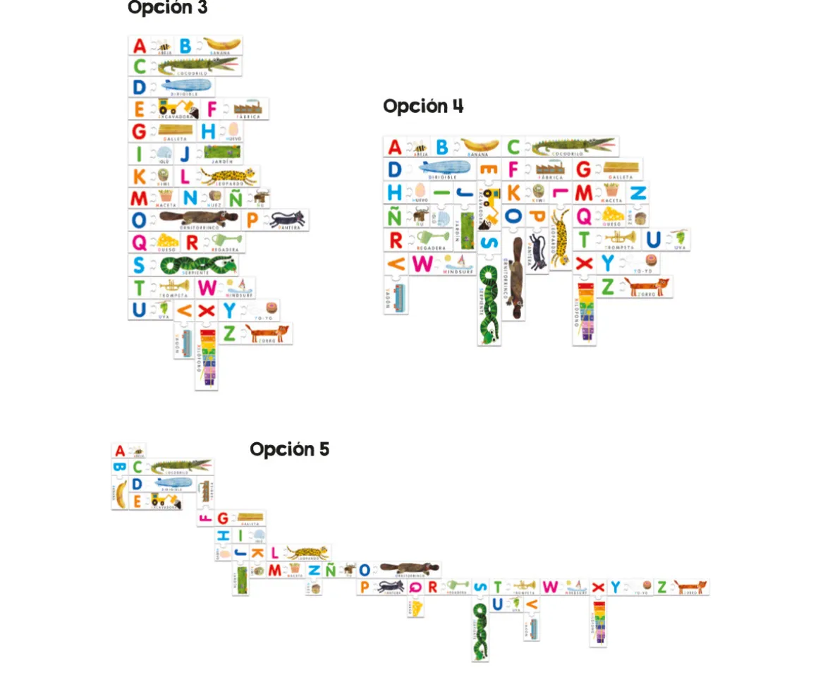 Un recurso multisensorial perfecto para que los niños comiencen a reconocer el alfabeto, relacionar sonidos y palabras y trazar las primeras letras con sus propias manos. Con este original puzzle podrán montar las 27 asociaciones, letras con sus imágenes, y montar el abecedario de muchas maneras.
