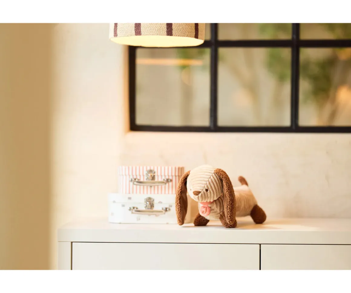 Fabricado con una suave tela acanalada en color beige y encantadoras orejas de bouclé marrón cuero, es perfecto para abrazar. Lleva un bonito collar en un tono tierra suave con el logo de Jollein. Es el amigo perfecto para acurrucarse, jugar y llevar a todas partes.