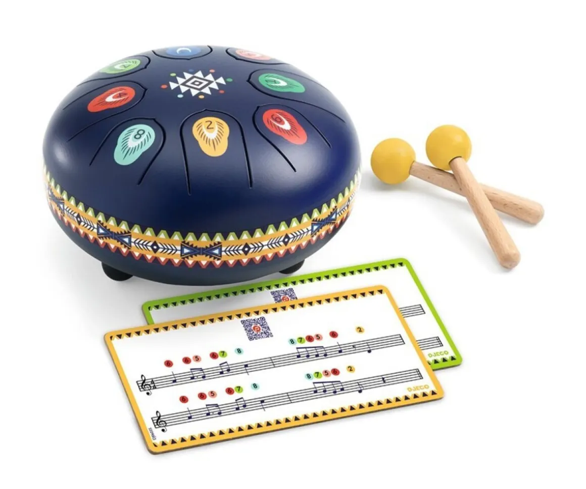 El Tambor Metálico Animambo de Djeco es un instrumento de percusión pensado para pequeños músicos a partir de 5 años. Con 8 lengüetas metálicas, cada una correspondiente a una nota musical, los niños pueden tocar melodías relajantes y desarrollar su sentido rítmico de manera intuitiva y divertida.