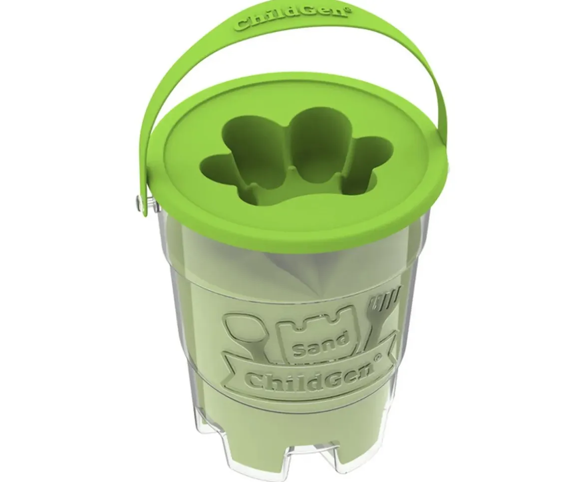 - El envase funciona como un cubo de arena que tiene en su tapa un original molde