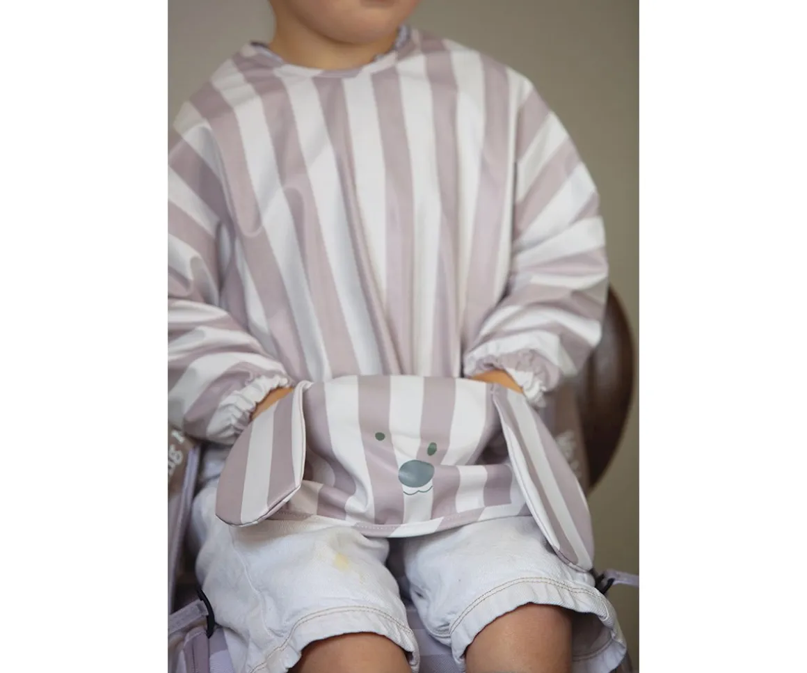 Divertido babero con mangas e impermeable de Walking Mum, ideal para bebés de 6 meses a 3 años. Con diseño unisex, ofrece máxima protección gracias a sus mangas largas con puños elásticos y bolsillo recogemigas en forma de un divertido perrito. Hecho de material impermeable, fácil de limpiar y perfecto para comidas, BLW y manualidades.