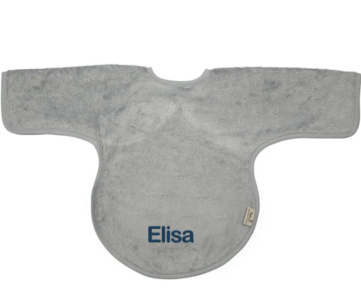 Babero con mangas fabricado en fibra de bambú orgánico con textura muy suave y ajuste de presión en el cuello