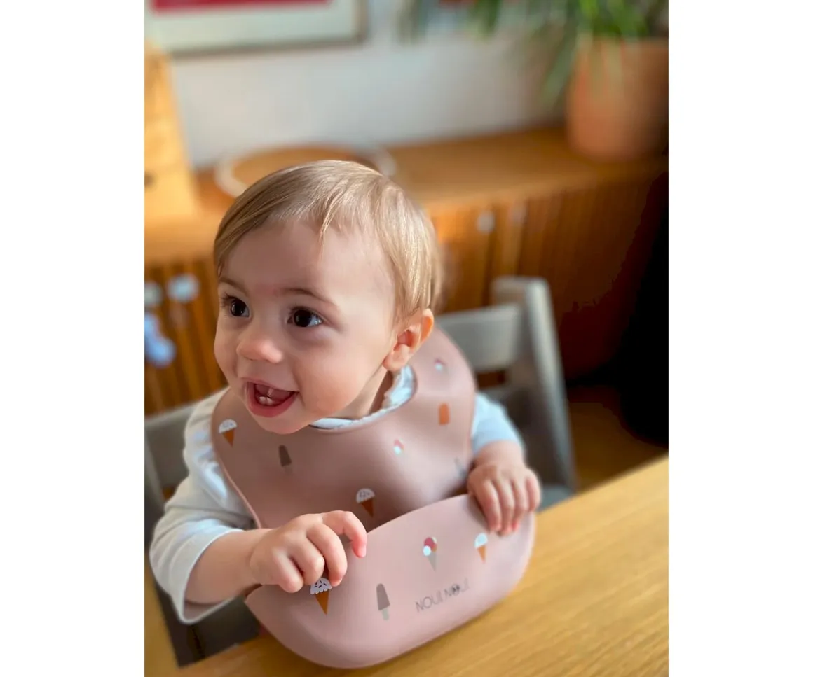 Este babero de silicona flexible color ice cream es muy suave y cómodo. Es ajustable para que los peques puedan usarlo durante mucho tiempo.