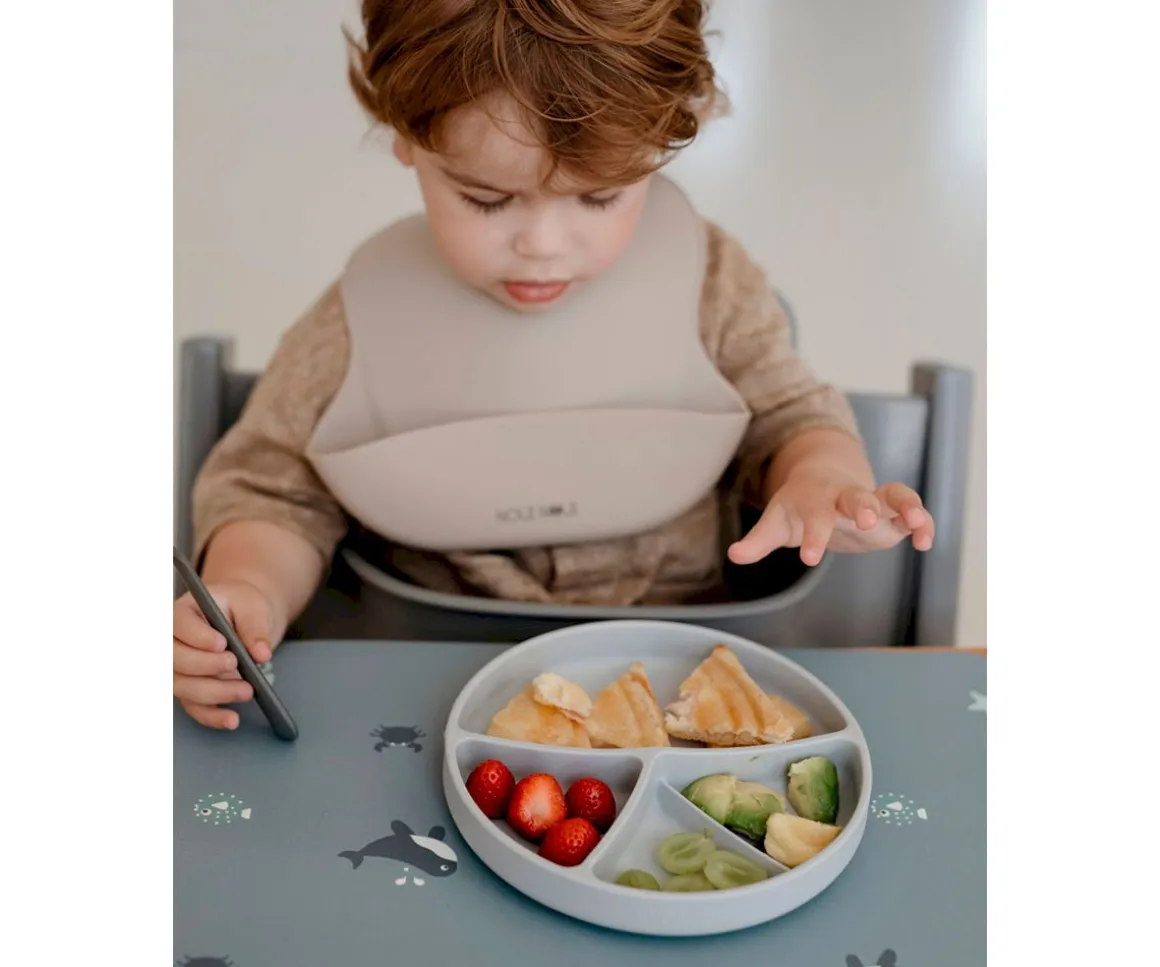 Este babero de silicona flexible es muy suave y cómodo. Es ajustable para que los peques puedan usarlo durante mucho tiempo.