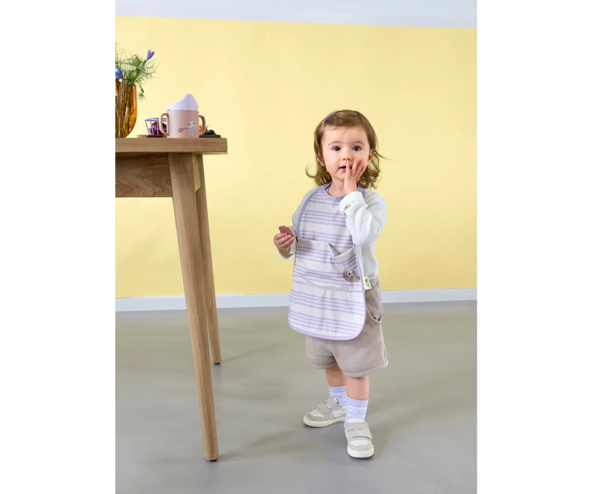 Babero impermeable extra grande de la colección Tiny Team de LÄSSIG. Se ajusta con cierre a botón a presión y es impermeable, lo que lo hace ideal no sólo para comer sino también para realizar manualidades en casa o en la guardería.
