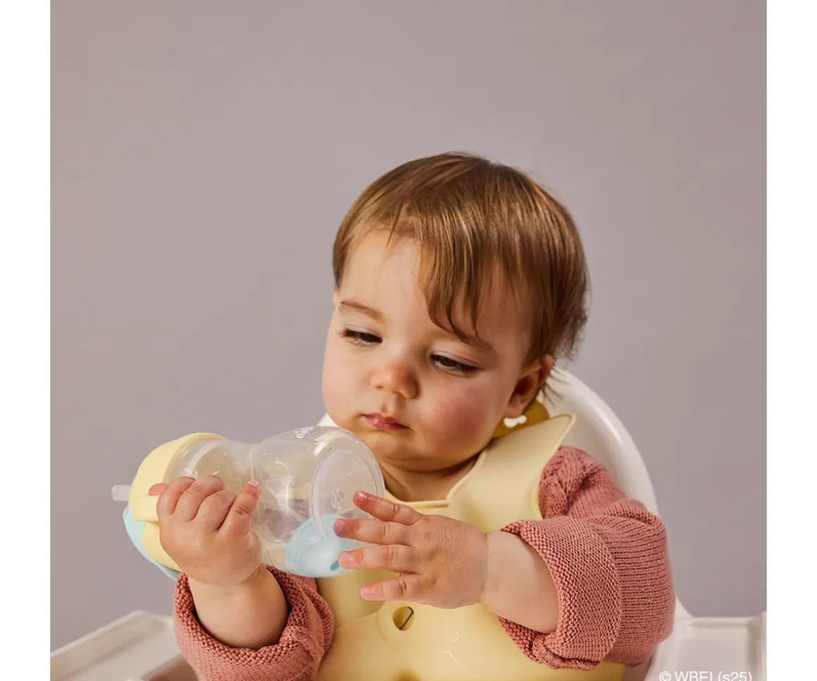 Babero práctico y enrollable de B.Box, cuenta con un bolsillo recogemigas, manteniendo al bebé más limpio, seco y cómodo durante las comidas.