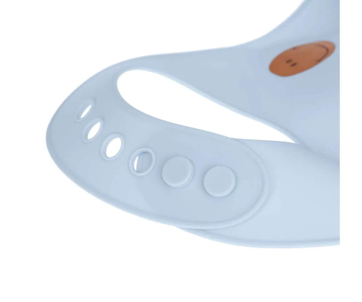 Babero de silicona con un bolsillo recogemigas para evitar que caiga la comida a la ropa.