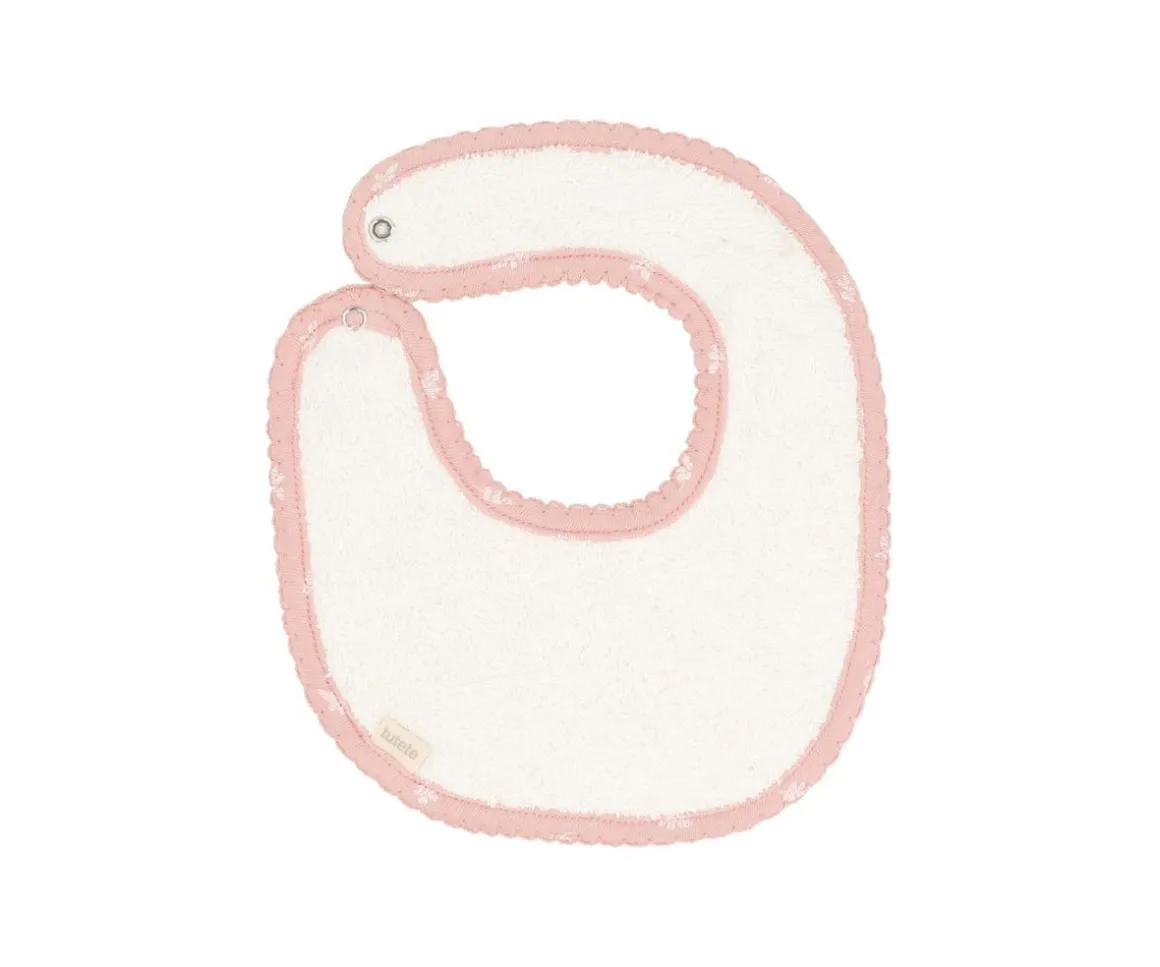 Precioso babero de algodón perfecto para proteger la ropa de los peques durante sus primeros contactos con la comida. Rematado con un bonito ribete de hilo.