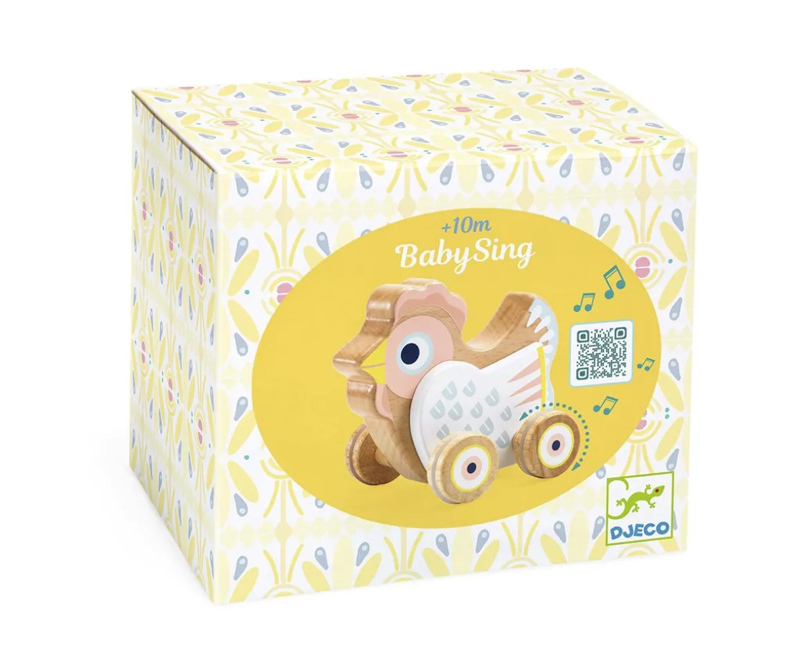 Este bonito pollo proporcionará horas juego a tu peque mientras lo hace rodar por el suelo. Mientras rueda toca la dulce melodía «Ah vous dirais-je maman», ya sea rodando hacia adelante como hacia atrás.