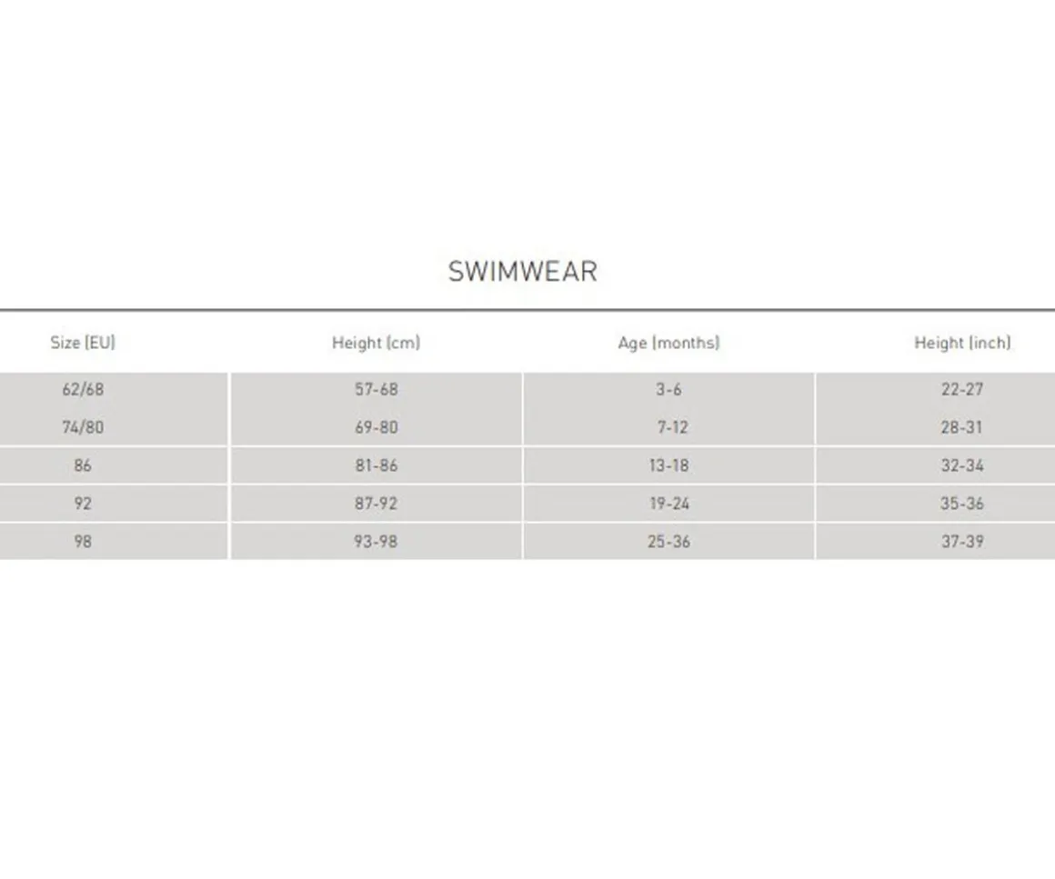 - ATENCIÓN: El uso de este bañador no sustituye jamás el uso de crema protectora y se debe de evitar la exposición solar del niño entre las horas en que el sol está en su punto más álgido