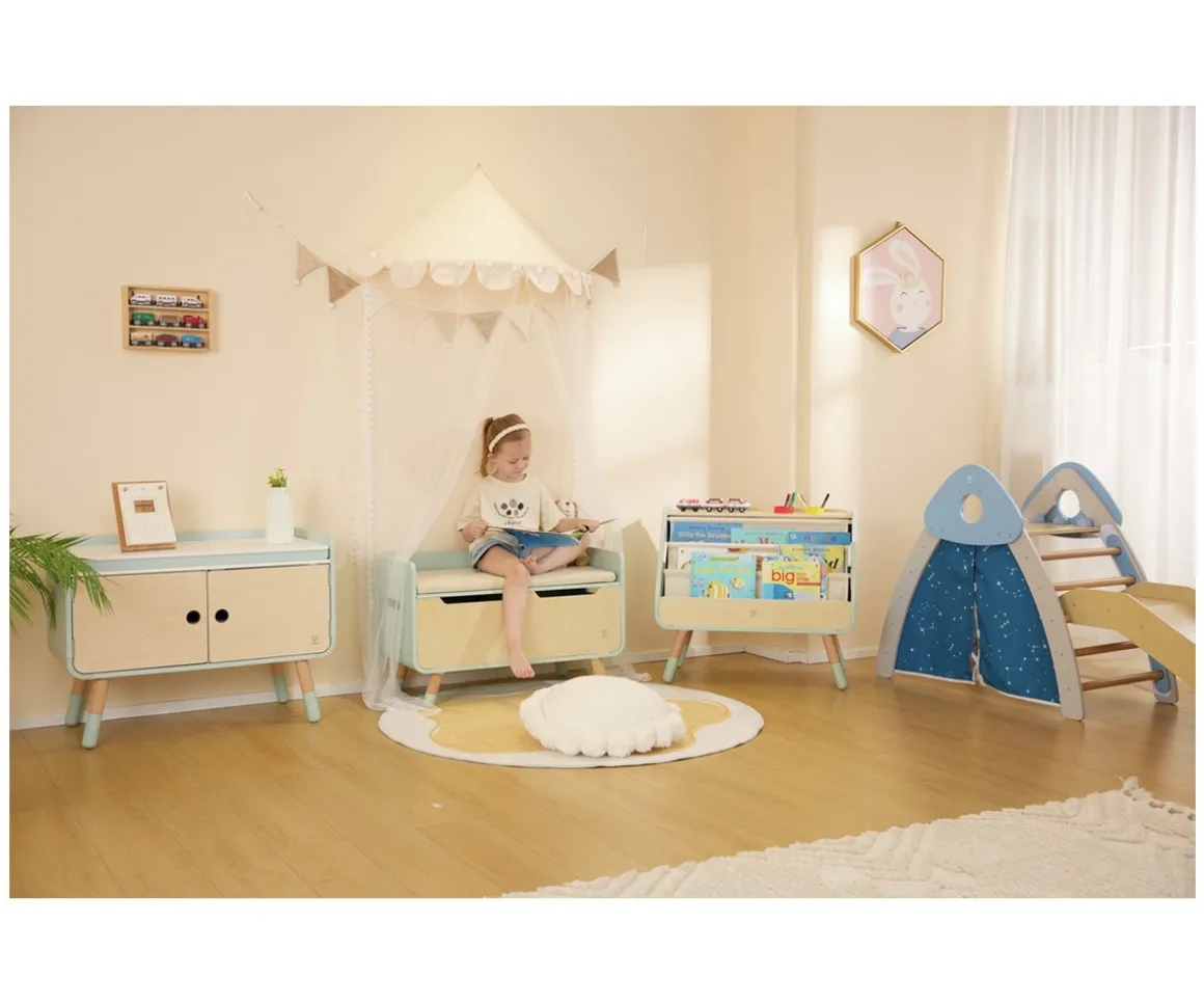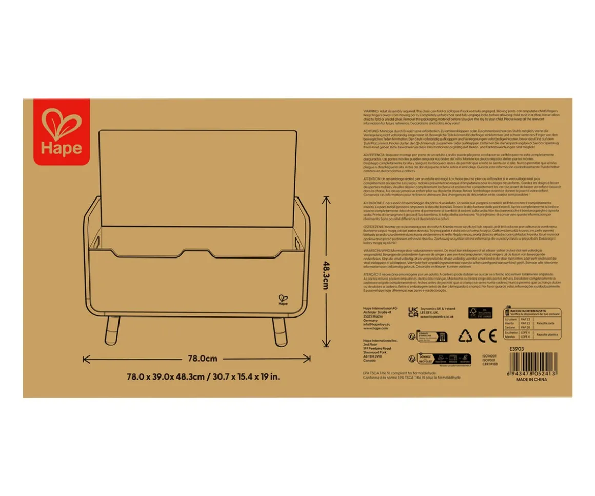 El baúl 2 en 1 de Hape es mucho más que un simple mueble: es una estación de creatividad y orden para los más pequeños. Con una capacidad de almacenamiento de 60 litros, permite guardar juguetes, libros o ropa, y se transforma fácilmente en un banco cómodo gracias al cojín incluido.