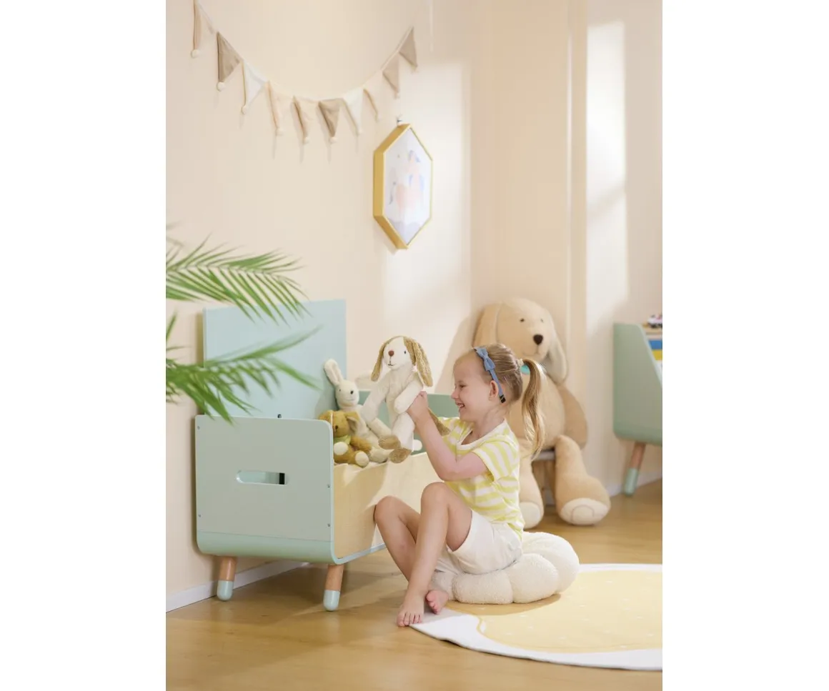 Su diseño moderno y funcional con esquinas redondeadas, asas laterales y materiales resistentes, la convierte en una pieza perfecta que quedará ideal en habitaciones infantiles, salas de juegos o cualquier rincón del hogar.