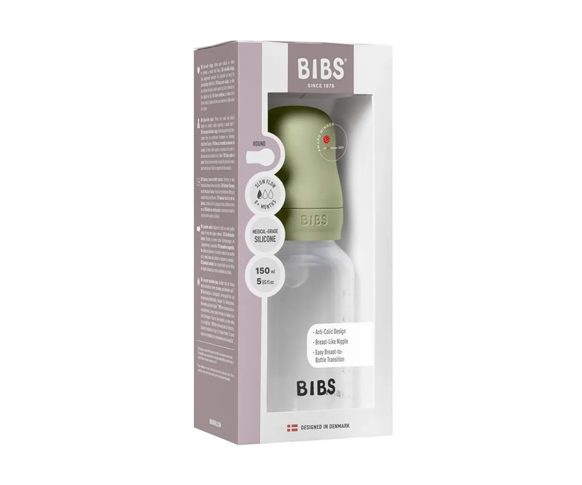 Nuevo biberón de plástico BIBS de 150ml de capacidad, más ligero y fácil se sujetar y compatible con todos los accesorios para biberones de la marca.