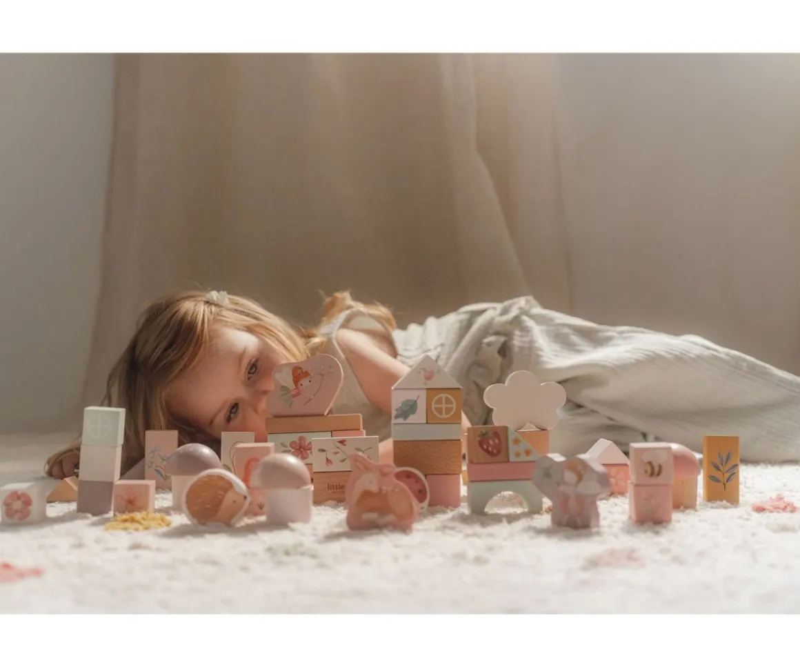 Construye un mundo de magia con hadas y los diferentes animales de la colección Fairy Garden de Little Dutch. El barril incluye 50 piezas para apilar, construir y crear un escenario de cuento de hadas.