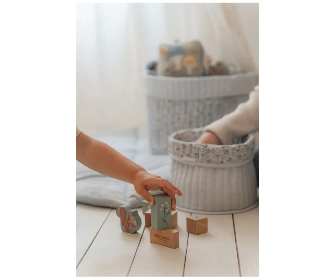 Construye un precioso bosque encantado con los bloques de madera de la colección Forest Friends de Little Dutch. El barril incluye 50 piezas para apilar, construir y crear todo lo que puedas imaginar.