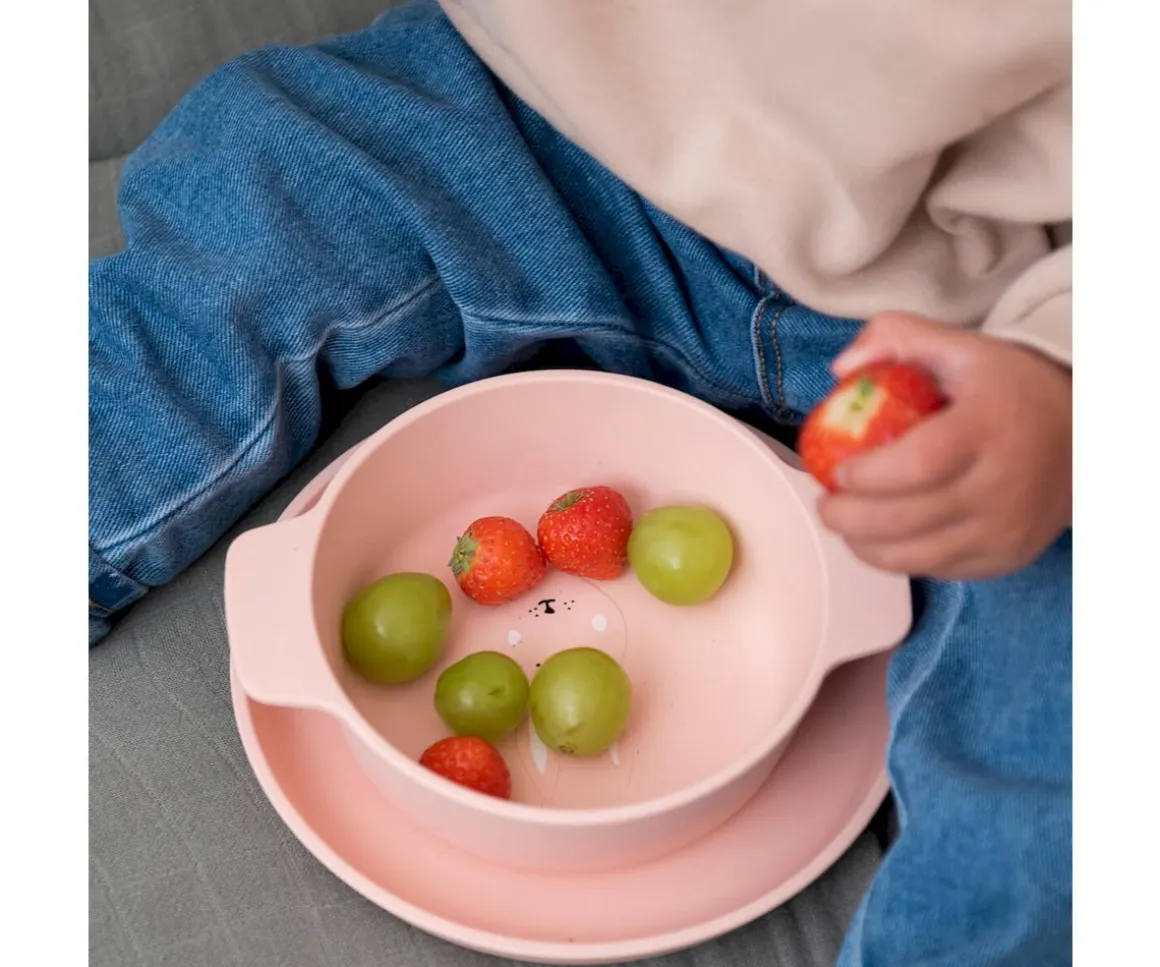 Bol de silicona con asas anchas útiles para que los peques comiencen a sostenerlo ellos mismos. Disfrutarán descubriendo su rostro amistoso en el fondo del bol. Los cuencos se pueden apilar bien para un fácil almacenamiento
