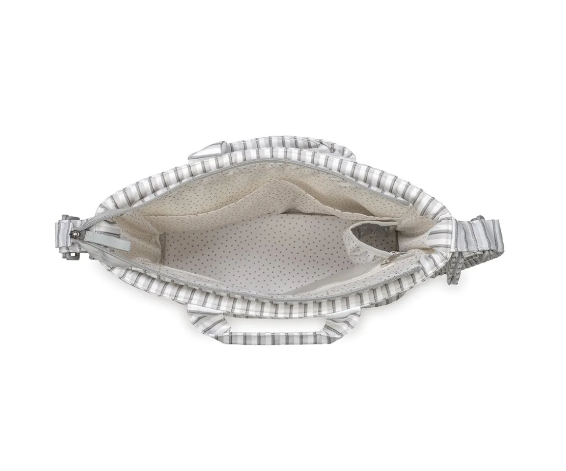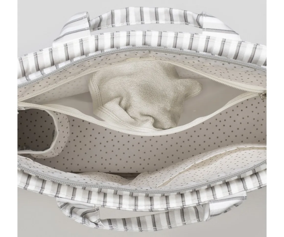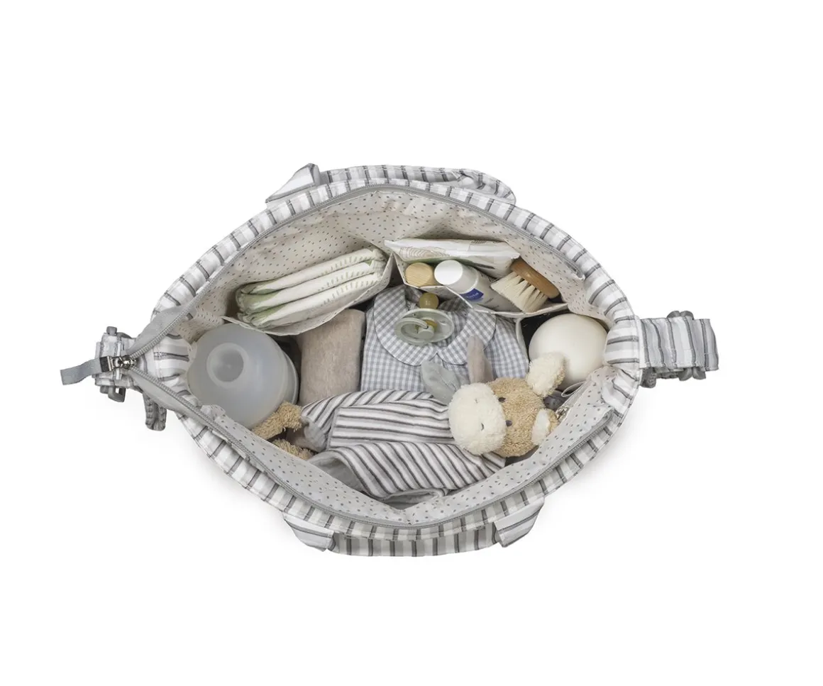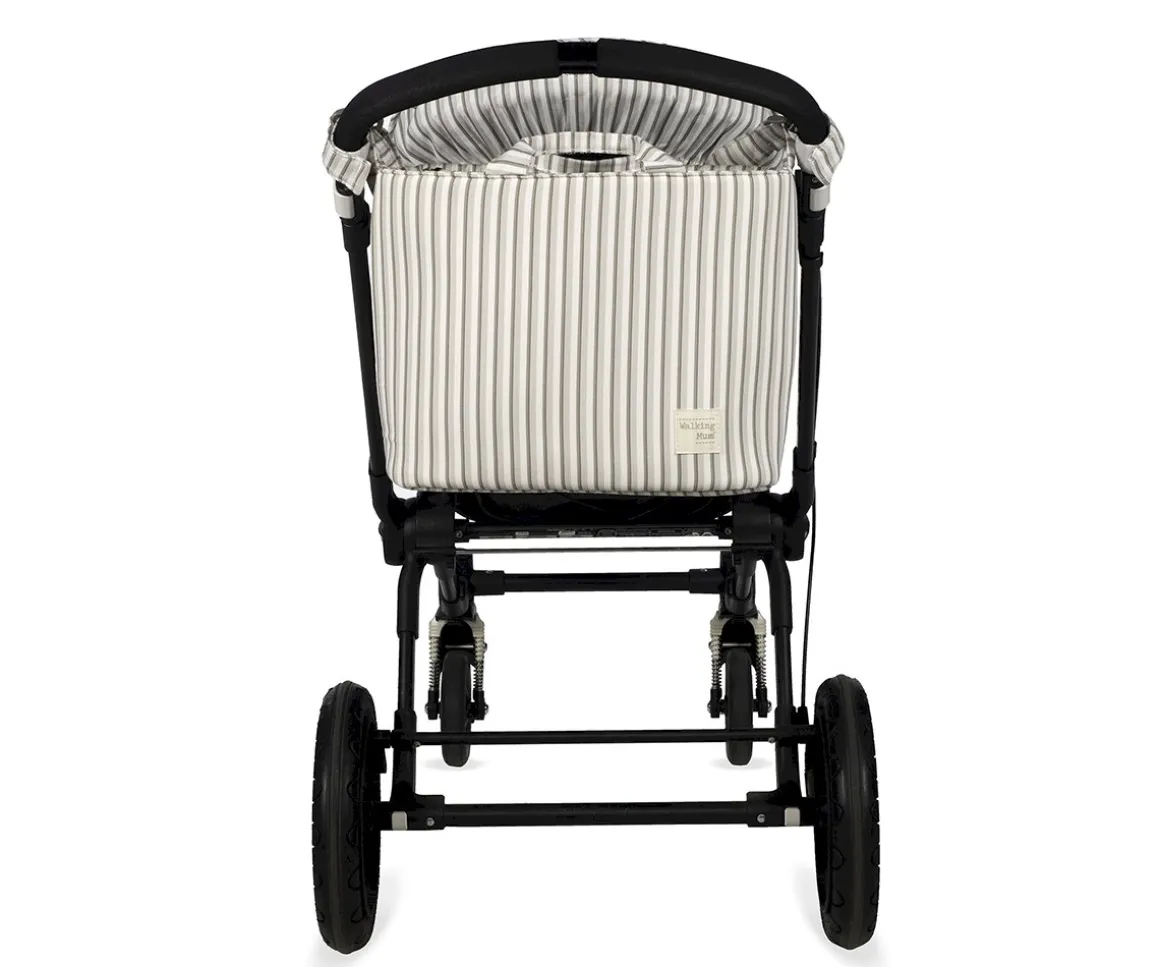 El bolso cambiador Botton de Walking Mum con estampado de rayas, es ligero, resistente y de gran capacidad. Incluye cambiador para bebé y múltiples bolsillos: térmico para biberones, plastificado para ropa húmeda y otros de fácil acceso. Su sistema de sujeción universal y sus asas lo hacen práctico para cualquier silla de paseo. Ideal para tener todo lo necesario del bebé organizado durante los paseos.