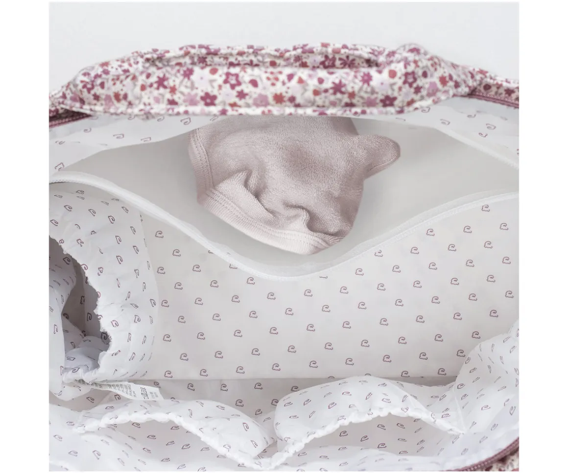 La bolsa canastilla Cherry Flores de Pasito a Pasito combina funcionalidad y estilo. Está confeccionada en loneta de algodón 100% con estampado floral y tratamiento waterproof, perfecta para organizar todo lo necesario del bebé con estilo y comodidad.