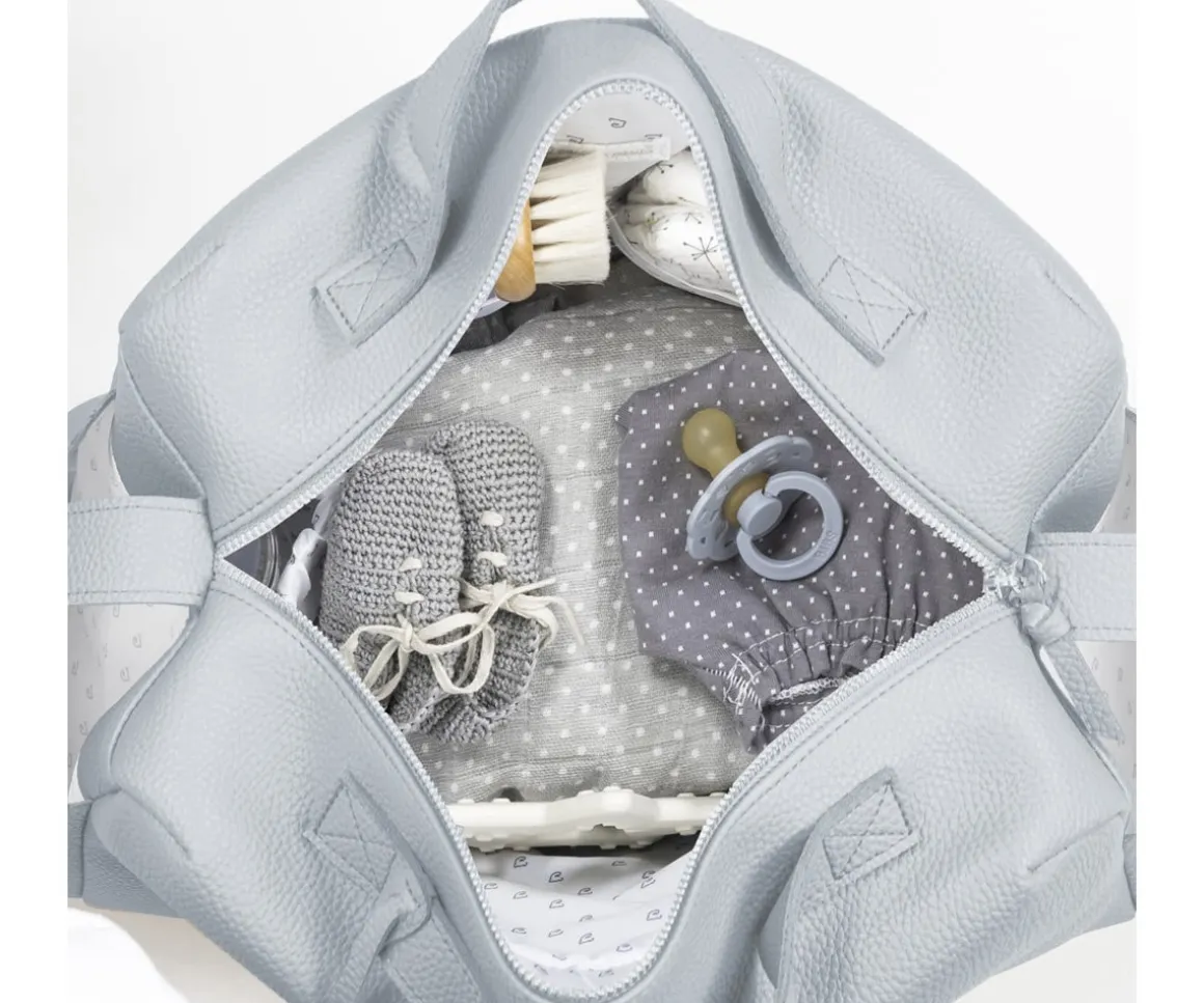 Confeccionada con ecopiel, esta bolsa ofrece una gran capacidad para llevar todos los artículos esenciales de tu bebé cuando estás fuera de casa. Su diseño versátil incluye cortas de mano y asa larga para llevar al hombro o en el cochecito.