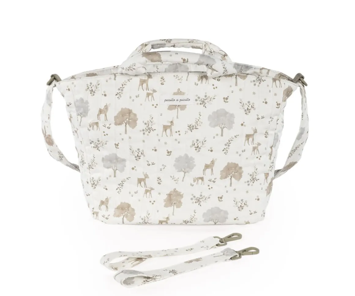 El bolso organizador Nara de Pasito a Pasito es ideal para llevar todo lo necesario durante el paseo del bebé. Está elaborado en loneta de algodón 100%, con amplio espacio y varios bolsillos interiores para una organización fácil. Incluye un bolsillo interior térmico para botellas o biberones. ¡Con un diseño perfecto para el uso diario y poder combinar con tus looks!