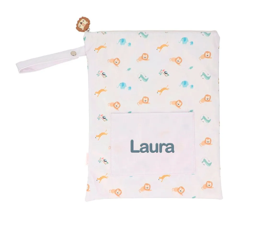 Son muy cómodas y versátiles gracias a su amplio espacio de almacenamiento, su cierre con cremallera y el asa con botón a presión. Además tiene un bolsillo delantero abierto que podrás personalizar con el nombre de tu peque.