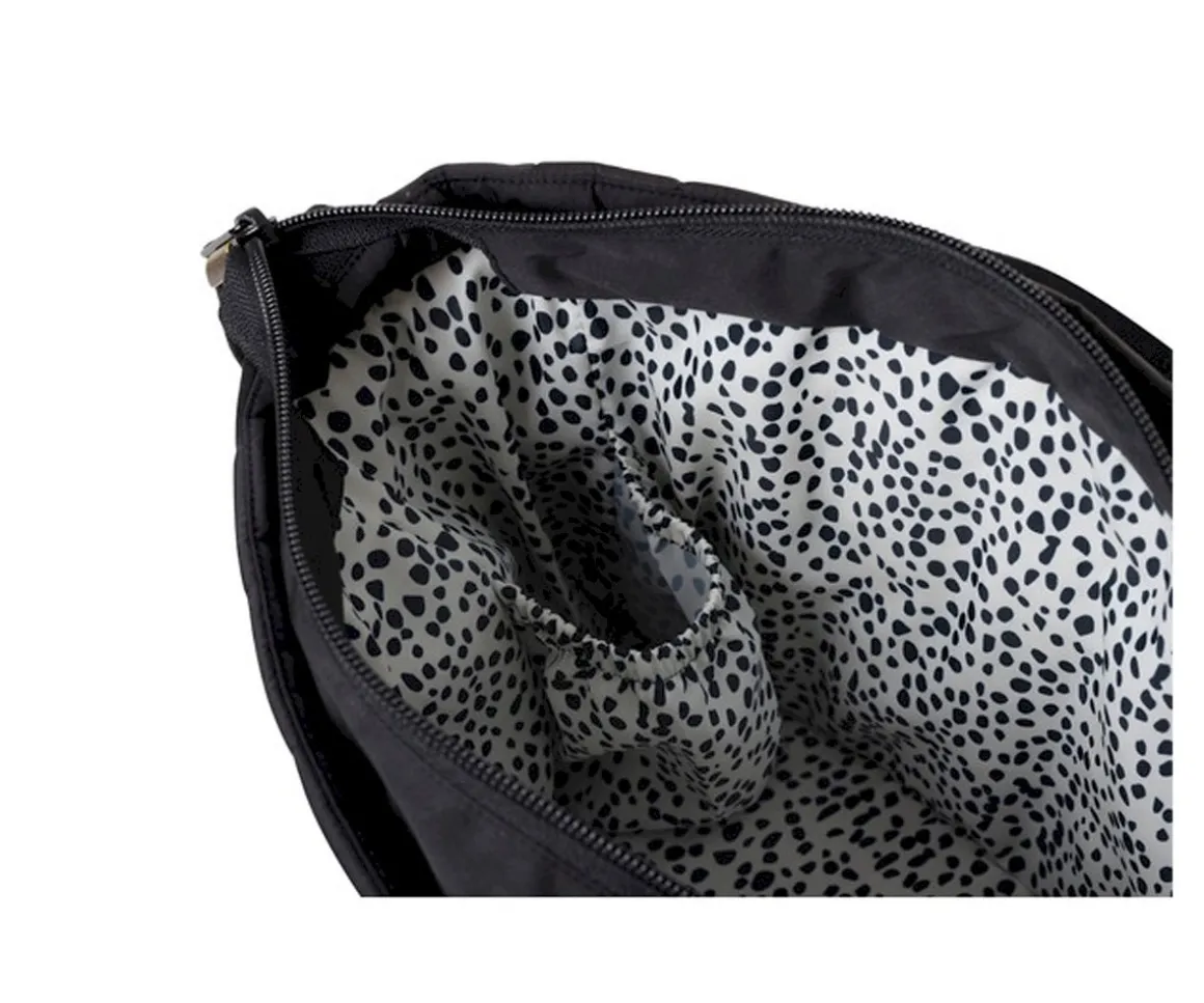 Organizador Jollein en color negro para silla de paseo con un diseño moderno y elegante. Este bolso organizador es abullonado con compartimentos elásticos internos y dos bolsillos en el exterior para un almacenamiento y fácil acceso.