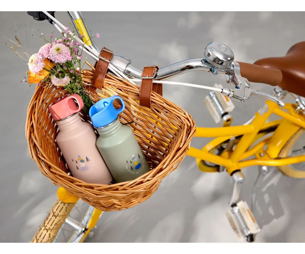 Botella de acero inoxidable de 500 ml de la colección Sunny Explorer de LÄSSIG, perfecta para el cole, excursiones o de viaje. Cuenta con tapón sport, a prueba de fugas, diseñada para que los más peques beban cómodamente y sin derrames.