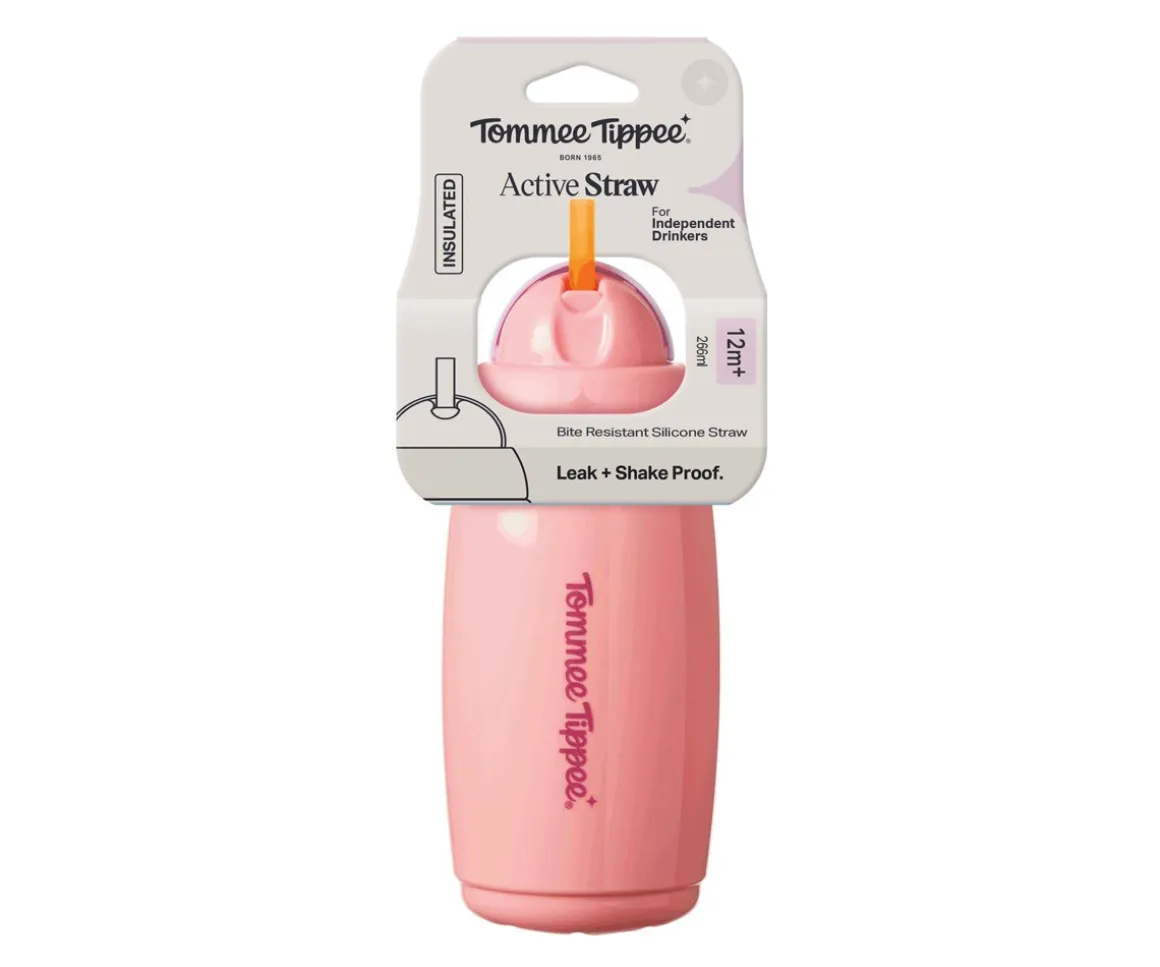 Hidratación práctica y sin derrames con la botella con pajita de Tommee Tippee.