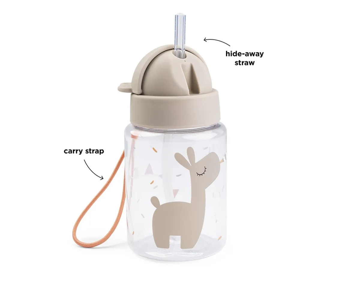 Práctica botella con pajita incluida para que tu peque pueda llevarla en la mochila al colegio, parque o cualquier lugar.