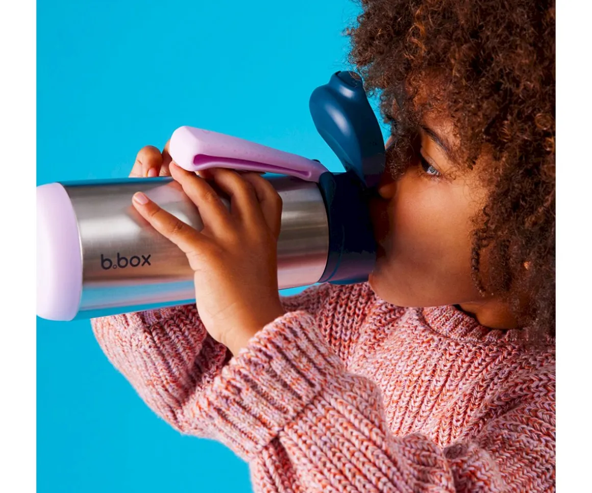 La botella térmica B.Box con capacidad de 500 ml y aislamiento de triple capa, mantiene los líquidos fríos hasta 15 horas y calientes hasta 8 horas. Incluye una práctica asa de transporte y un botón de apertura frontal fácil de usar.