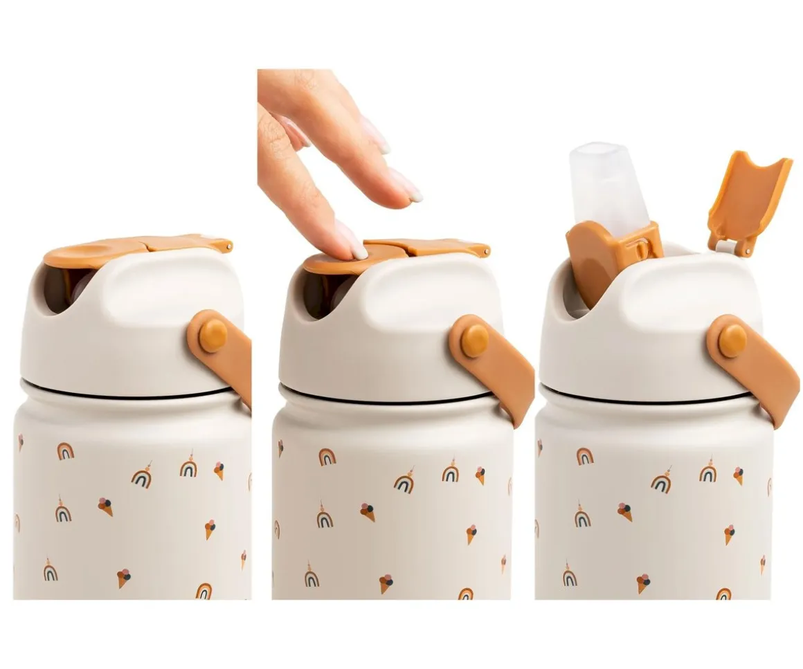 Esta botella de acero inoxidable con capacidad de 420 ml de The Cotton Cloud, es a prueba de fugas cuando está abierta y cerrada, lo que la hace perfecta para que los peques la lleven a todas partes. Cuenta con un asa y una boquilla con pajita de silicona suave, y además, ¡mantiene el agua fría para disfrutar del verano!