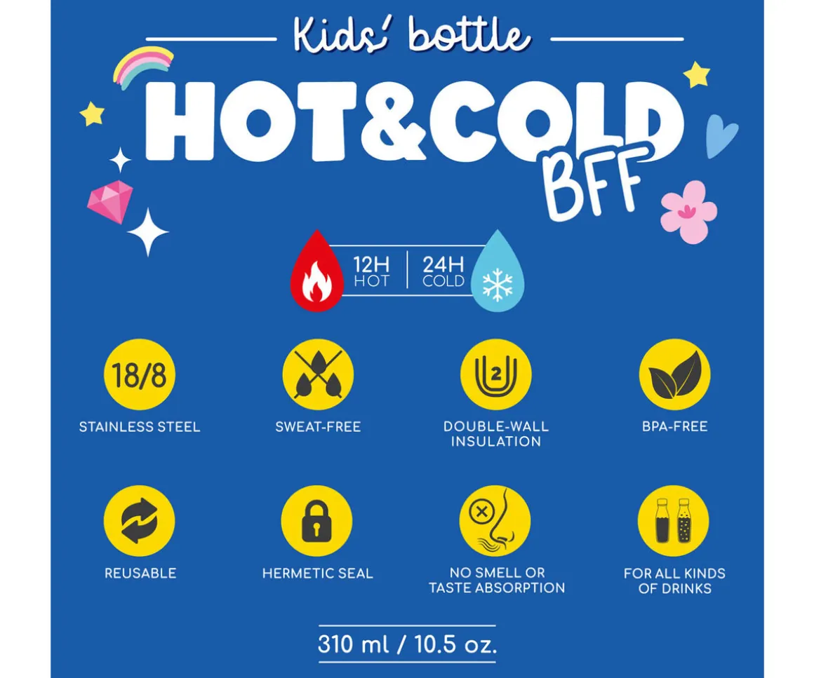 Con su adorable diseño, esta botella térmica combina funcionalidad, sostenibilidad y estilo, ayudando a fomentar buenos hábitos de hidratación desde la infancia, mantiene las bebidas frías hasta 24 horas y calientes hasta 12 horas, siendo perfecta para el cole, excursiones o actividades al aire libre.