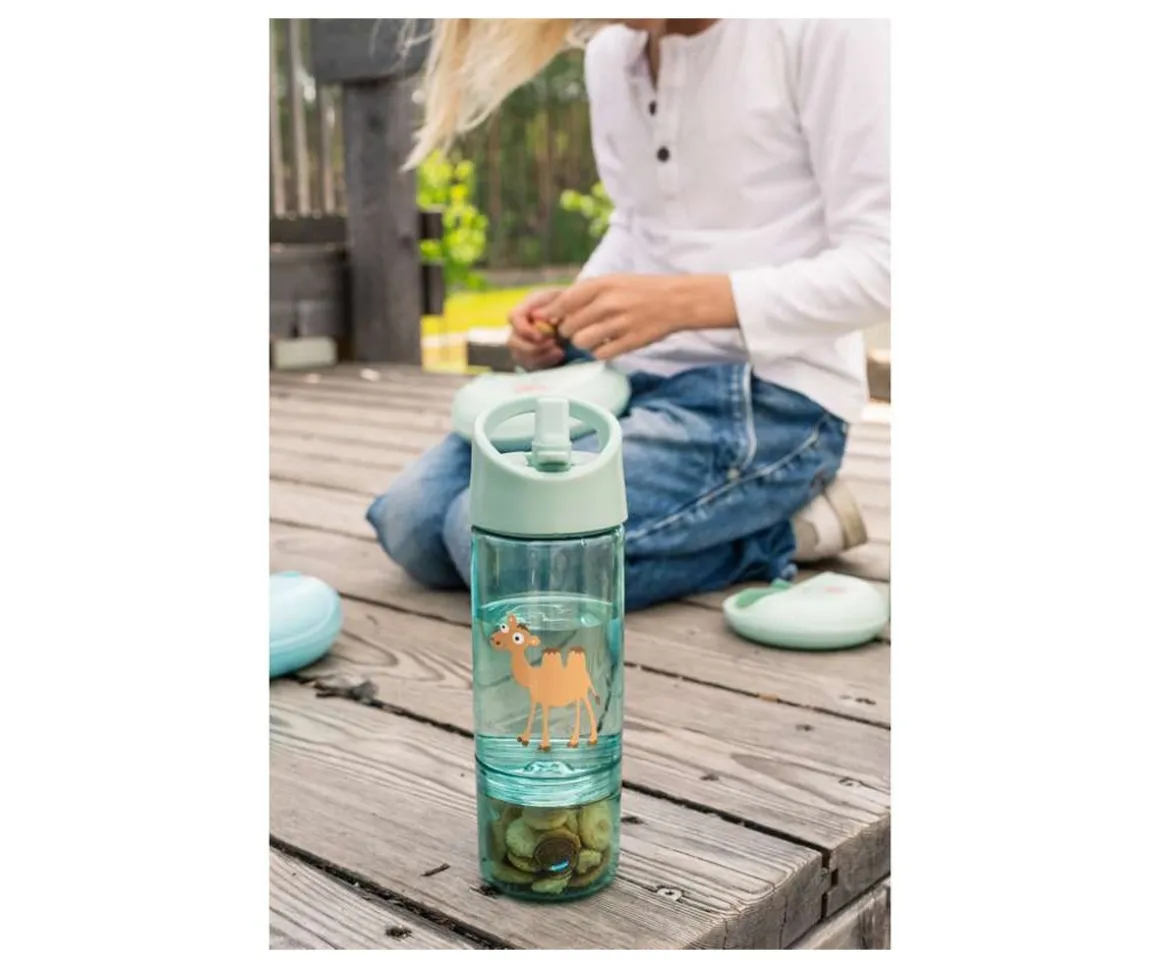 La botella infantil con compartimento inferior de Carl Oscar está diseñada especialmente para niños, con una doble función práctica y original: en la base extraíble puedes guardar fruta, frutos secos, galletas u otros snacks. ¡Perfecta para el cole, excursiones o actividades extraescolares!