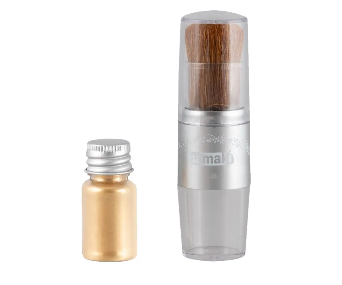 Con la brocha Magic Brush y su polvo brillante de dorado orgánico, los niños pueden brillar de pies a la cabeza.